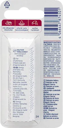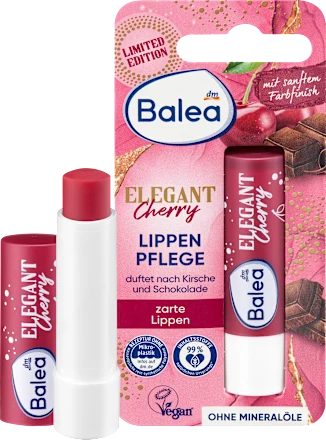 Balea's Elegant Cherry lip balm combines nourishing shea butter with a subtle tint for a pampered lip experience. The creamy texture provides supple care and prevents lips from drying out. With a delicate cherry and chocolate scent, every application becomes a moment of indulgence. A light tint gives lips a fresh and natural look while keeping them optimally protected and cared for. Ideal for everyday use and for anyone who wants a fruity-chocolatey lip care experience. Formula free of microplastics and water-soluble, purely synthetic polymers.